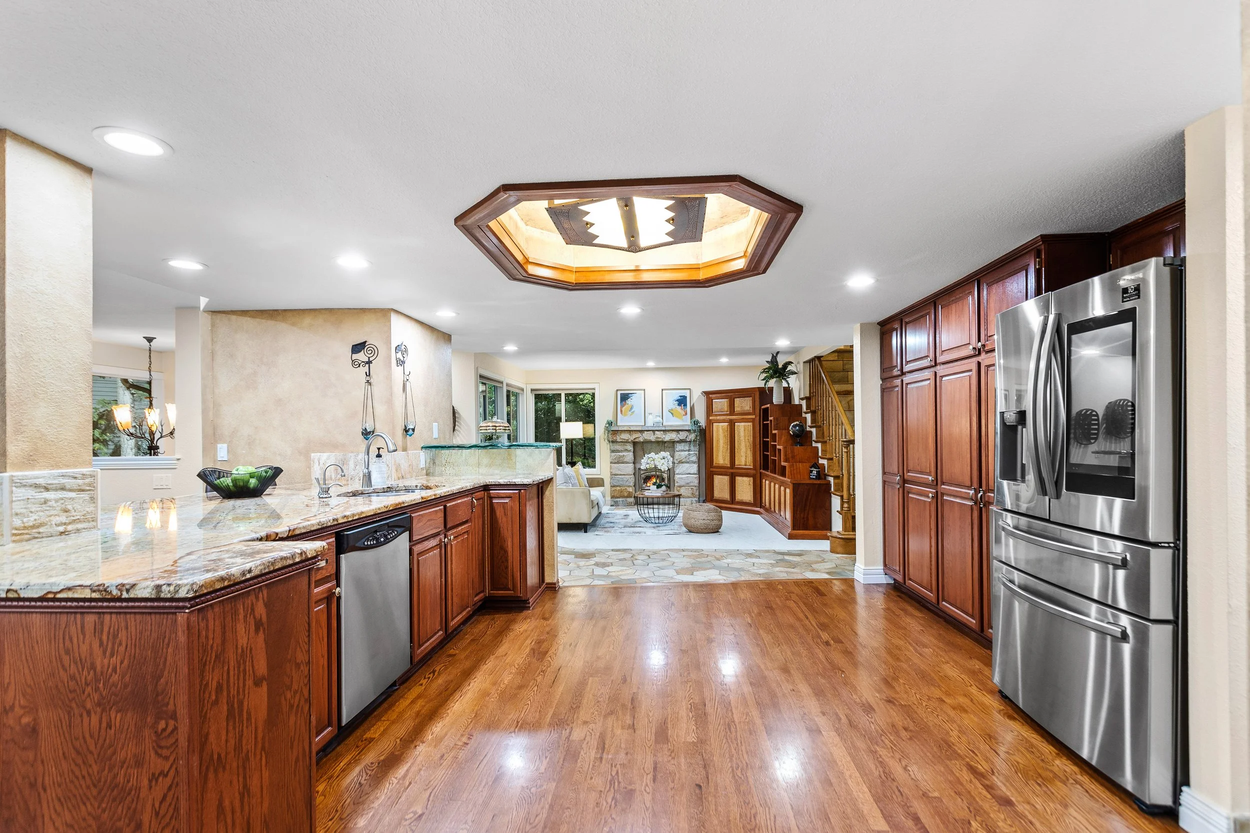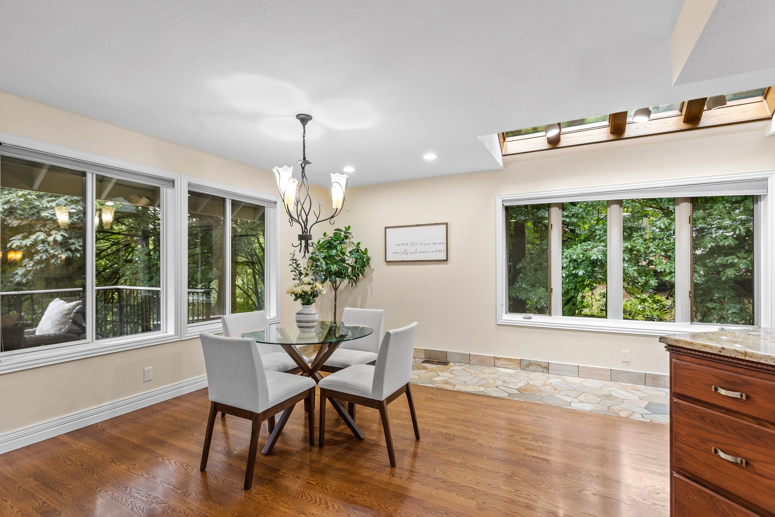 This spacious abode displays a floorplan designed for hosting. Naturally lit kitchen offers multiple eating spaces with wet bar & cozy sitting room. Continue down stairs off kitchen to bonus rec room with French doors leading out to hot tub & lush 1+ acre property. Main floor provides office space, expansive formal living room & formal dining area. Step outside to a stunning deck, perfect to continue your gatherings outdoors. Upper level features yet another generous bonus room, complete guest suite with its own en suite full bath, 2 additional bedrooms, & extravagant primary bedroom with double vanity & 2 huge walk in closets. Resting in the heart of Woodinville, minutes from wine tasting, equestrian venues, and 405, LOCATION could not be better!