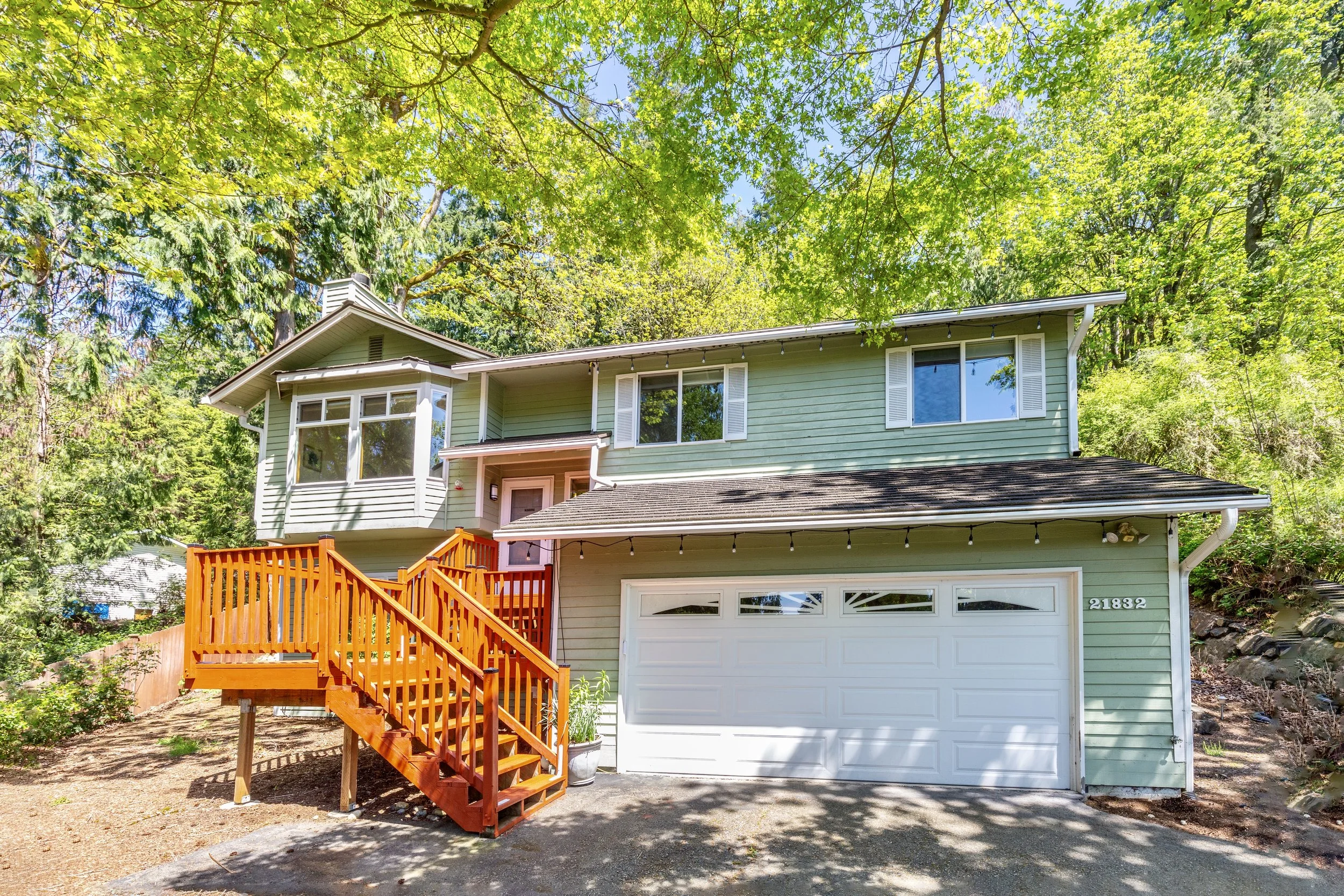 Perched above the street & surrounding neighborhood, at the end of a cul-de-sac, take in the tranquility that awaits in this picturesque setting on a shy acre lot. Great room style living w/remodeled Quartz kitchen, oversized island. Primary Suite with a show-stopping view of the backyard expanse. Downstairs is a spacious recreation room & 3/4-bath and new flooring. The privacy in the backyard is truly a WOW experience! Sit & bask by the fire pit on the paved patio, admiring the serenity, or explore the secret patio above. Keep your eyes peeled for any deer wandering in the forest behind. All the finishing touches will make you stay forever, yet minutes from all the amenities Sammamish has to offer + award-winning Eastlake High School