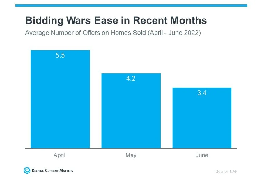 And having more options may also lead to less intense bidding wars. Data from the Realtors Confidence Index from the National Association of Realtors (NAR) shows this trend has already begun. In their recent reports, bidding wars are easing month-over-month (see graph below):