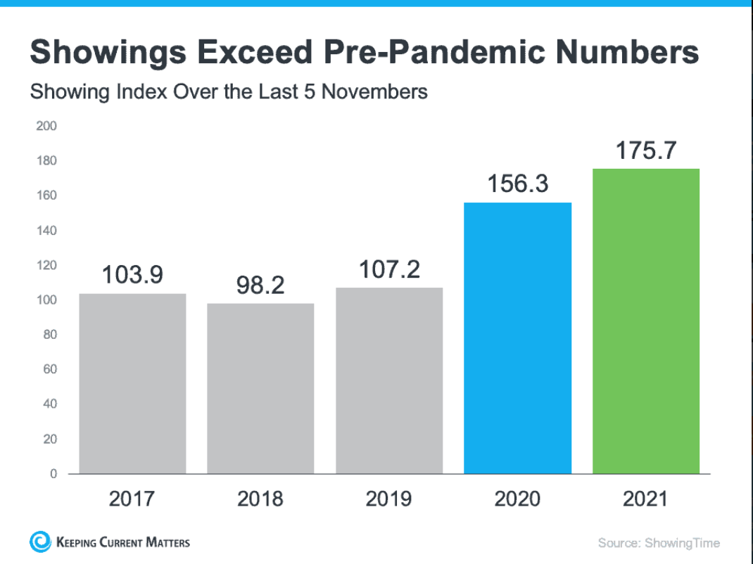 The latest index, which covers November showings, reveals that buyers are still very active in the market. Comparing this November’s numbers to previous years, this graph shows that the index is higher than last year and much higher than the three years prior to the pandemic. Clearly, there’s an influx of buyers searching for your home.