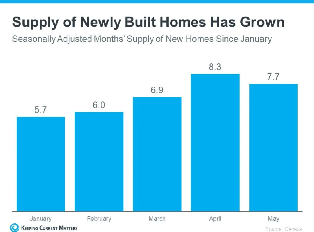 Census data shows there’s an increasing number of new homes available for sale. It includes homes that are under construction, soon to be completed, and fully built. As the graph below highlights, the supply of new homes for sale has also grown this year: